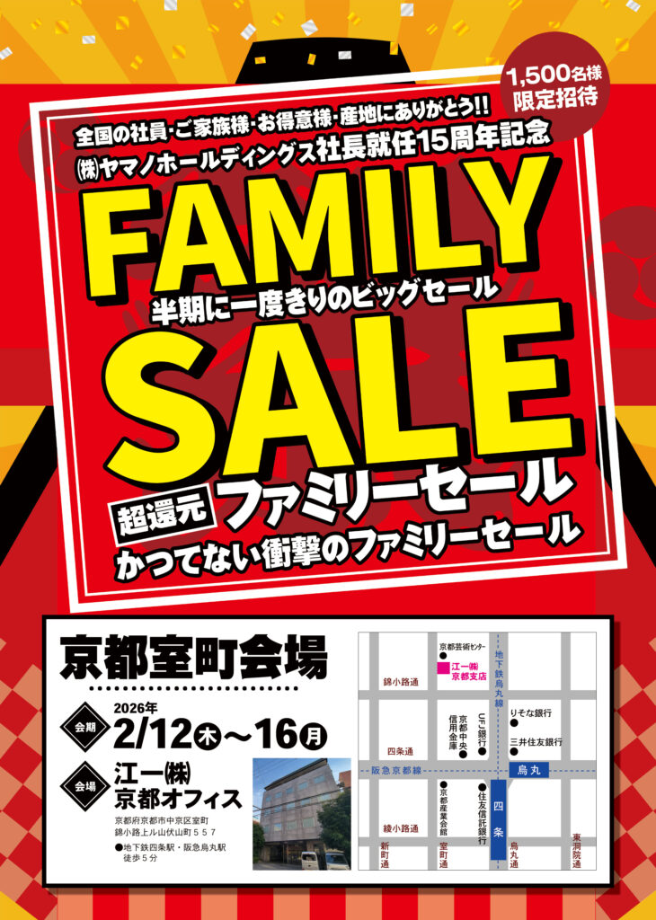 社員・ご家族様・お取引先様・お得意様・前楽生徒/卒業生様限定の招待制【ファミリーセール】を開催いたします。