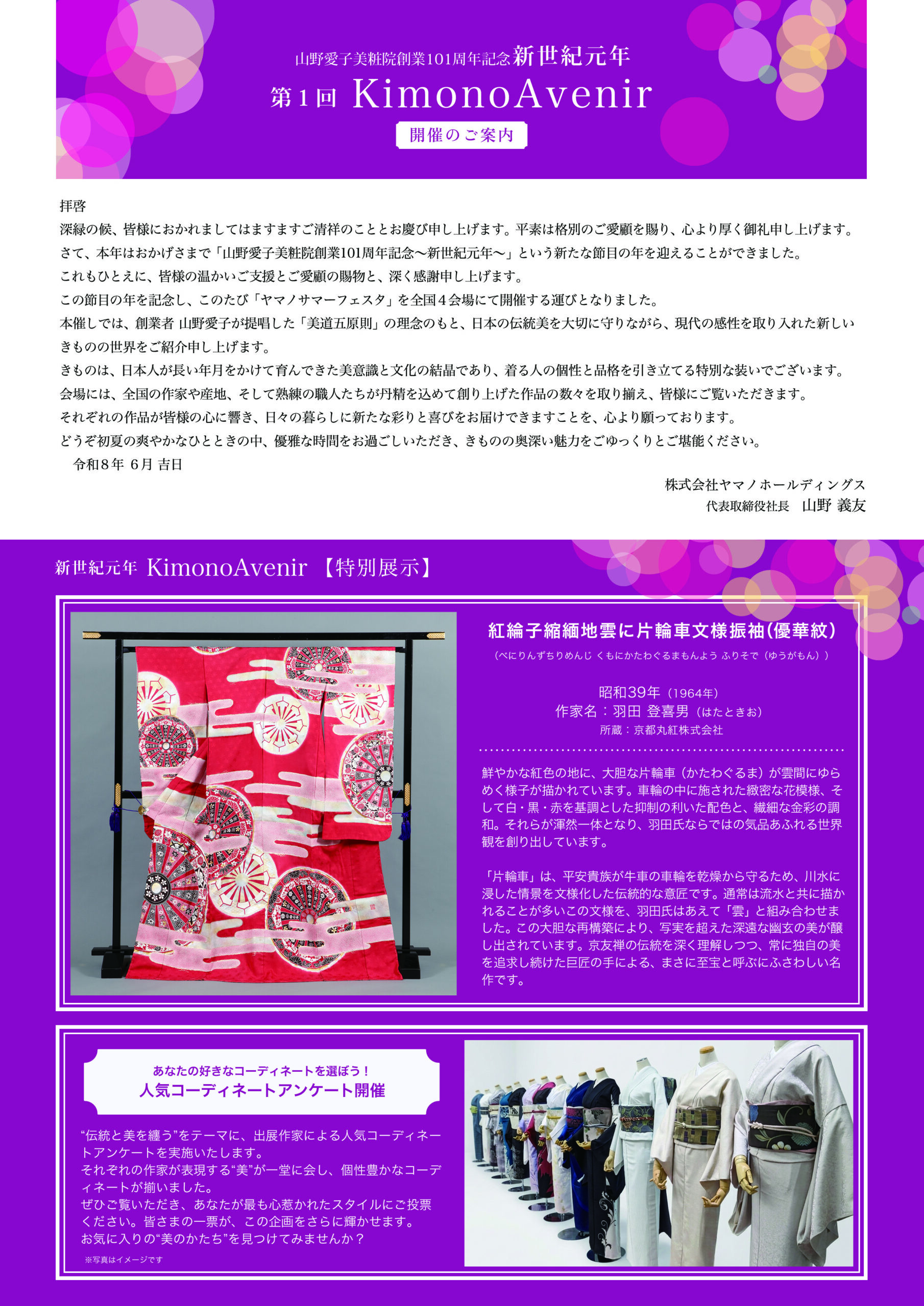 第1回 Kimono Avenir 公開日 2026.04.03 第1回 Kimono Avenir(きものアベニール)の開催にあたり、心よりご案内申し上げます。 会期:2026年6月17日(水)~6月21日(日)会場:日本橋プラザ 3階 展示ホール